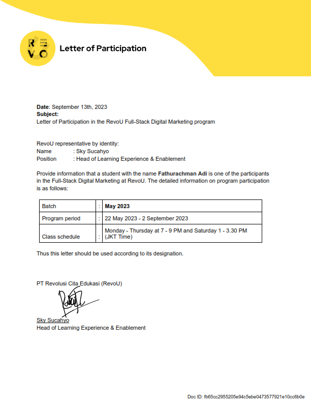 Dengan pengalaman lebih dari 11 tahun, saya telah menempuh perjalanan profesional yang sebagian besar berakar kuat di bidang digital marketing. Selama lebih dari satu dekade, saya terbiasa memimpin strategi pemasaran digital yang berorientasi pada hasil, mulai dari brand building, kampanye media sosial, hingga optimalisasi performa iklan.